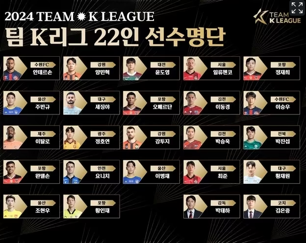 양 팀 선수 및 감독 명단