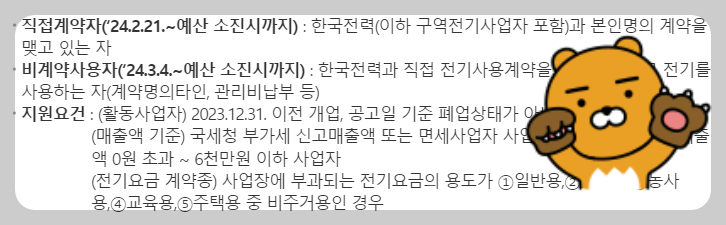 - 직접 계약자: 한국전력과 직접 계약한 소상공인은 사업자 정보와 고객 번호를 입력하여 신청하면, 고지서에서 전기요금이 차감됩니다.