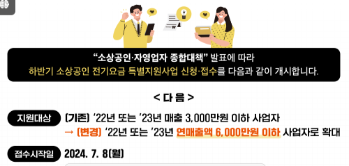 문의처: 추가적인 정보는 중소벤처기업부 공식 홈페이지(www.mss.go.kr)에서 확인할 수 있으며, 소상공인 전기요금 특별지원 콜센터(1533-0200)에서도 안내받을 수 있습니다.