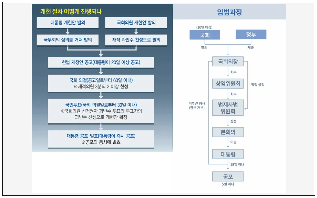 - 공포 및 시행: 법안이 통과되면 대통령의 공포를 거쳐 시행됩니다.