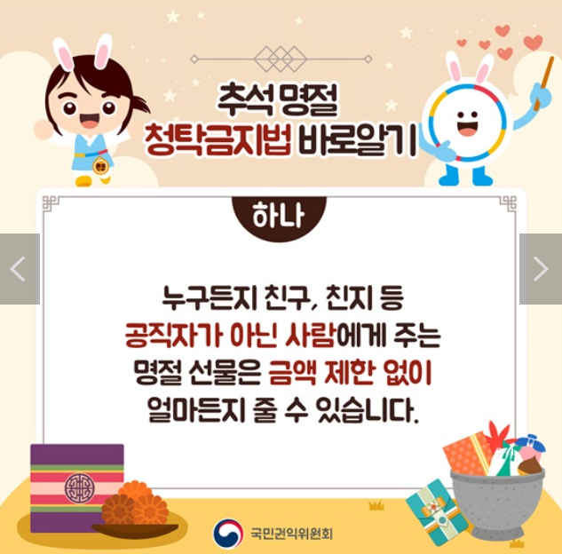 2024년 추석부터 시행되는 청탁금지법의 개정 내용은 시대에 맞춘 현실화된 조처이길 바랍니다.