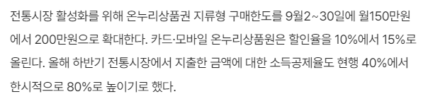 온누리상품권의 가장 큰 장점 중 하나는 할인 혜택입니다. 특히 추석과 같은 명절 시즌에는 더 큰 할인이 제공됩니다. 예를 들어, 2024년 9월 한 달 동안 온누리상품권을 구매하면 최대 15% 할인을 받을 수 있습니다.