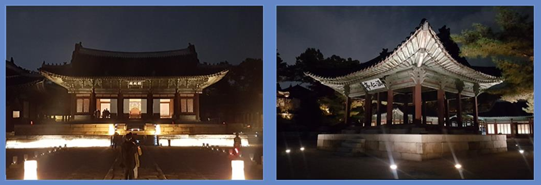 - 창경궁의 고유한 건축물과 자연경관이 어우러진 밤의 풍경.