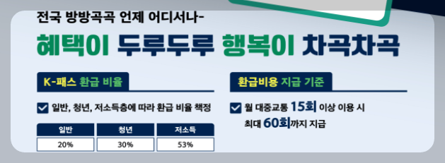 K-PASS와 국가 복지혜택등 각 계층에 따라 맞춤형 혜택을 제공합니다.