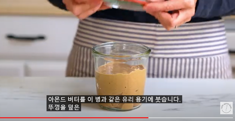 - 완성된 아몬드버터를 유리병에 담아 보관합니다.
