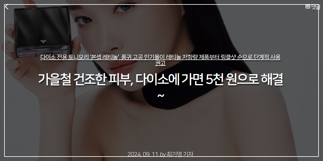 레티놀에 대한 궁금증이 많으신가요? 최근 피부 탄력을 높이는 방법으로 레티놀이 주목받고 있습니다. 그래서 다이소에서 레티놀제품을 구매 사용해 보니 굿굿. 그래서 인터넷에서 레티놀 자료를 찾아 정보 공유드립니다. 본 글은 다이소광고는 아닙니다. 다이소와 전형 상관없는, 다이소레티놀 단지 가성비... 더 가성비 좋은 판매처가 있다면 알려주세요. 이런 것은 서로 공유.