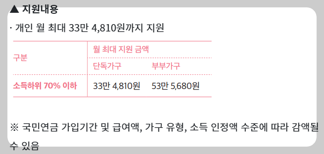 2024년 기준으로 단독가구의 경우 월 213만 원, 부부가구의 경우 월 340만 8,000원 이하의 소득인정액을 가져야 합니다.