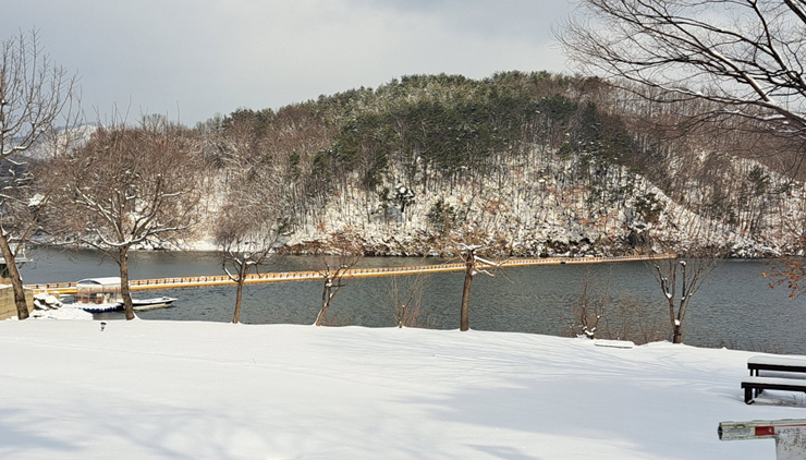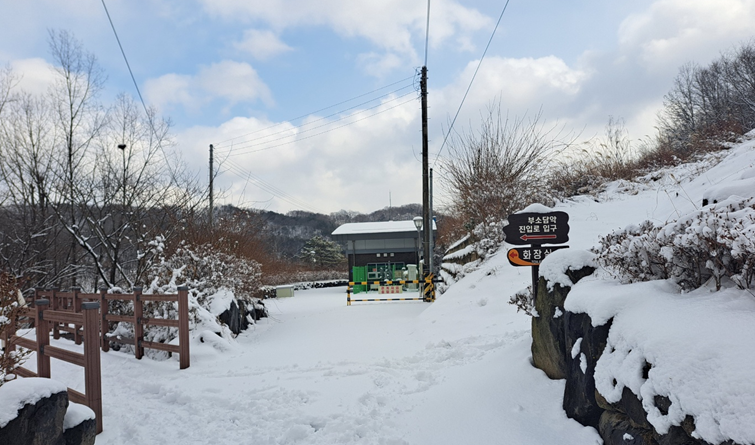 겨울에는 눈이 쌓인 부소담악의 경치가 마치 동화 속 한 장면처럼 아름답습니다. 차가운 공기 속에서 호수의 정적을 느끼며 조용한 산책을 즐길 수 있습니다. 겨울철에는 따뜻한 음료를 마시며 정자에서 경치를 감상하는 것도 좋은 방법입니다.
