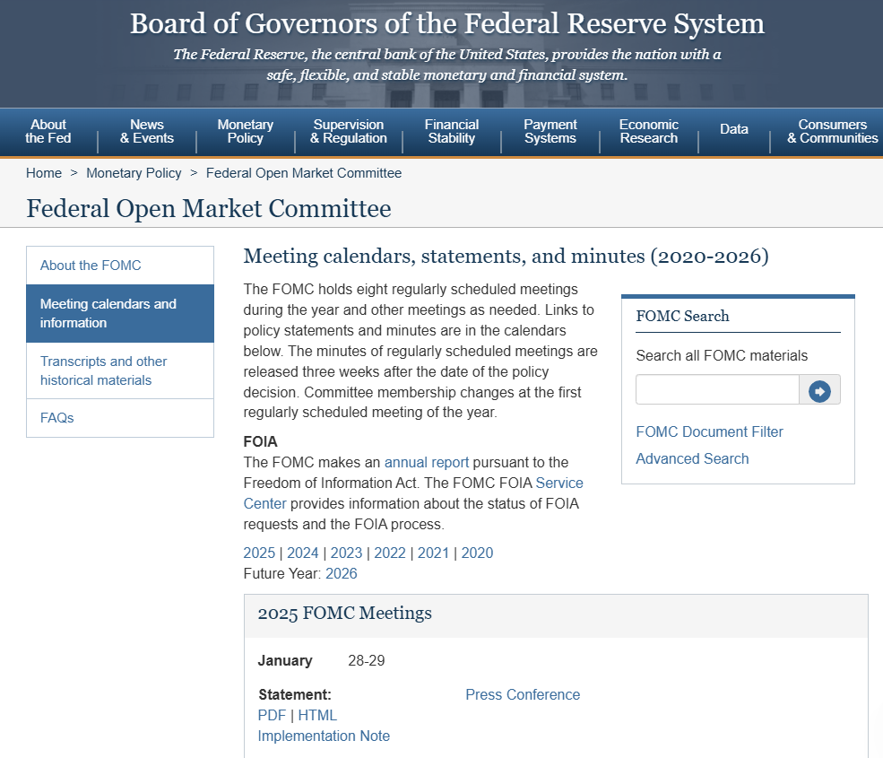 FOMC는 연 8회 정기적으로 회의를 열어 경제 및 금융 상태를 검토하고, 연방 기금 금리(federal funds rate)를 설정합니다.