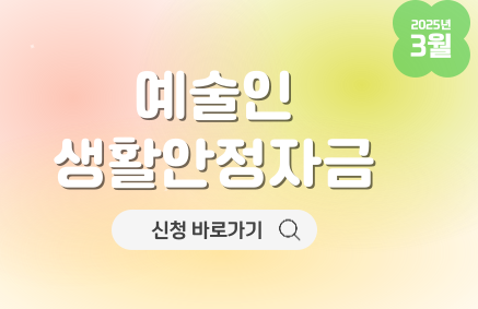 예술인의 창의성을 지키는 '25년 예술활동준비금' 예술인들이 경제적인 여건으로 인해 활동을 중단하지 않도록 하기 위해 준비된 자금 받아 가세요.