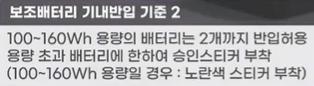 - 하지만 이번 개정으로 인해 보조배터리 반입 개수에 제한이 생겼으며, 배터리 외부에 용량이 명확히 표기되지 않은 경우에는 반입이 전면 금지됩니다.