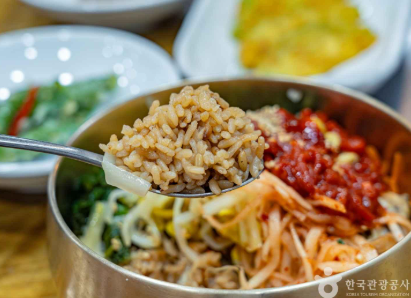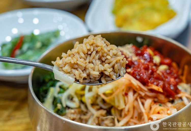 비빔밥이 나오면 숟가락이나 젓가락을 이용해 모든 재료를 골고루 비벼주세요. 숟가락은 재료를 짓누르며 맛을 잘 섞이게 하고, 젓가락은 양념이 구석구석 배도록 도와줍니다. 양손으로 비비면 더욱 잘 비벼진다고 하니 도전해 보시는 것도 좋겠습니다! 비빈 후에 맛을 보고 싱겁다면 고추장을 더 넣어 간을 맞추시면 됩니다.
