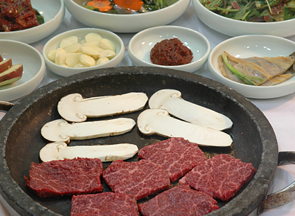 등불가든은 강원도 지역의 대표적인 한우 브랜드인 양양 한우만을 15년간 고집스럽게 사용해 왔다고 합니다. 양양 한우는 육질이 곱고 담백한 것으로 알려져 있으며, 이곳의 등심은 특히 씹는 맛이 고소하고 뒤끝이 개운한 것이 특징이라고 해요. 다양한 TV 방송 소개될 정도로 그 맛과 명성이 이미 널리 알려져 있습니다.