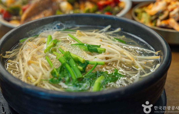 가장 먼저 주문한 메뉴는 바로 복지리입니다. 맑은 탕으로 나온 복지리는 뽀얀 국물에 콩나물과 미나리가 푸짐하게 들어있었어요. 한 숟가락 뜨자마자 느껴지는 시원하고 깔끔한 맛이 정말 일품이었습니다.