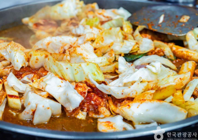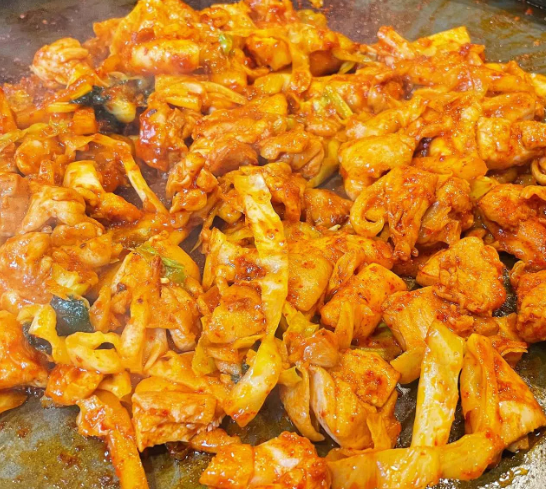 매콤한 고추장 양념에 재운 닭고기와 신선한 양배추, 고구마, 양파 등 다양한 채소를 함께 철판에 볶아 먹는 방식입니다. 닭갈비 본연의 맛은 물론, 다양한 사리(떡, 치즈, 면 등)를 추가하는 재미가 쏠쏠하며, 마무리는 역시 K-디저트, 볶음밥이죠! 특히 양배추의 단맛이 깊어지는 겨울철에 먹으면 더욱 맛있습니다.