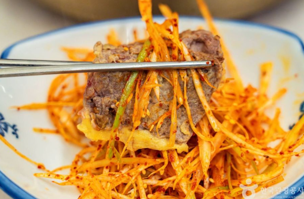 미미원의 육전은 국내산 한우 암소의 아롱사태를 사용하여 부드러운 식감과 깊은 맛을 자랑합니다. 숙련된 직원분이 직접 테이블에서 먹는 속도에 맞춰 한 점 한 점 정성스레 구워주시기에, 마지막 한 점까지 따뜻하고 부드러운 육전을 즐길 수 있습니다. 육전 본연의 풍미를 느끼고 싶다면 소금에 살짝 찍어 먹는 것을 추천하며, 매콤한 파절임과 함께 곁들이면 육전의 고소함이 배가되어 더욱 다채로운 맛을 경험할 수 있습니다. 묵은지나 콩가루 소금과의 조합도 별미이니 꼭 시도해 보세요.