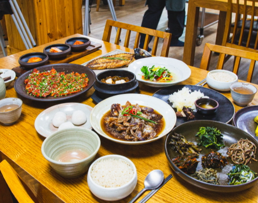 오대산 월정사 입구에 자리한 오대산민속식당은 계절에 따라 수십 종의 산채가 한 상 가득 차려지는 산채정식으로 명성이 자자합니다. 이곳의 특별함은 주인이 직접 산에 올라가 산채와 야생 버섯 등을 채취하여 요리에 사용하고, 직접 메주를 빚어 된장을 만들기도 한다는 점입니다. 자연의 신선함과 정성이 가득 담긴 건강한 밥상을 경험하고 싶다면 오대산민속식당을 방문해 보세요. 월정사 방문 전후에 들러 식사하기에도 좋습니다.