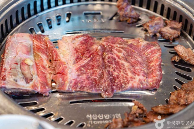저희는 먼저 갈비살을 주문했습니다. 참숯 위에서 지글지글 익어가는 갈비살은 고소한 향을 풍기며 식욕을 자극합니다. 직원분께서 직접 맛있게 구워주셔서 가장 최적의 상태로 갈비살을 맛볼 수 있었는데요. 육즙이 가득하고 부드러운 갈비살은 입안에서 사르르 녹아내리며 환상적인 맛을 선사했습니다.