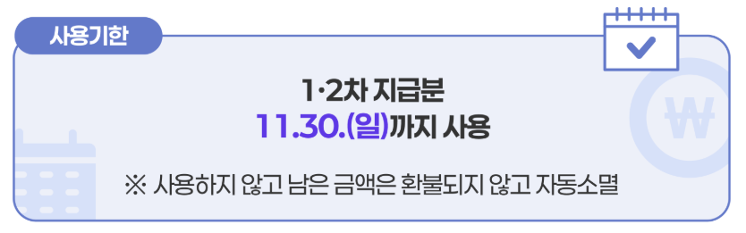 - **사용처**: 연 매출액 30억 이하의 소상공인 사업장에서 사용할 수 있으며, 사용 가능한 매장에는 안내 스티커가 부착될 예정입니다. 지역사랑상품권으로 지급받은 경우, 기존 지역사랑상품권 가맹점에서 자유롭게 이용할 수 있습니다.
