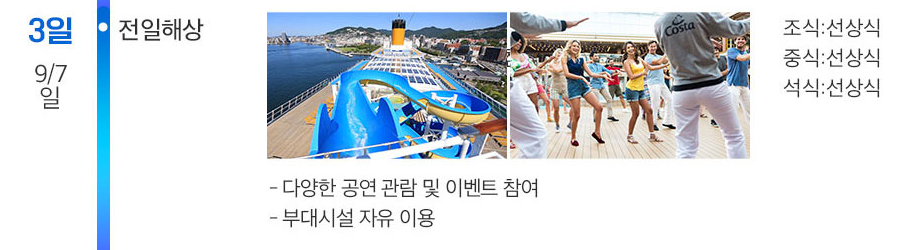 - [3일차] 9월 7일(일): 해상 (크루즈 시설과 프로그램 200% 즐기기)