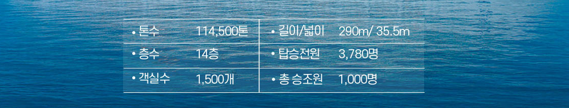**<코스타세레나호>**는 지중해의 신화와 로마 시대를 모티브로 디자인된 럭셔리 크루즈선입니다. 총 1,500개의 선실, 5개의 레스토랑, 13개의 바, 4개의 수영장 등 최고급 시설을 자랑하며, 선내에서 진행되는 다채로운 엔터테인먼트 프로그램과 각 기항지에서의 문화 체험이 어우러져 완벽한 여행을 선사합니다.