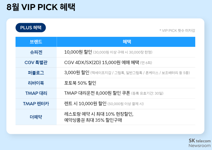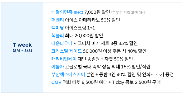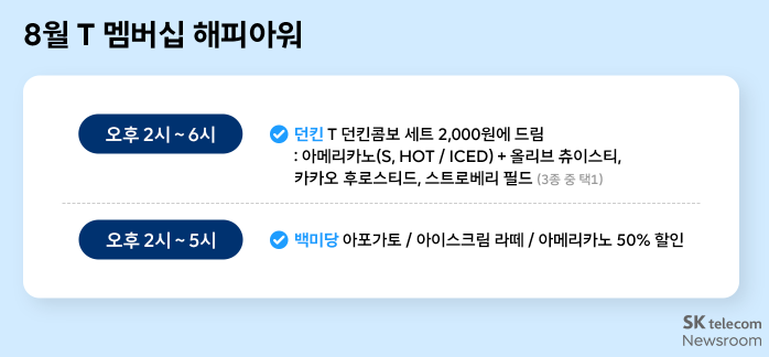 놓칠 수 없는 SKT 8월 T 멤버십 주요 혜택