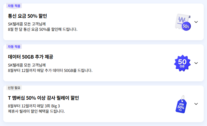 SKT 고객 감사제: 통신비 50% 할인 + 데이터 50GB 추가!