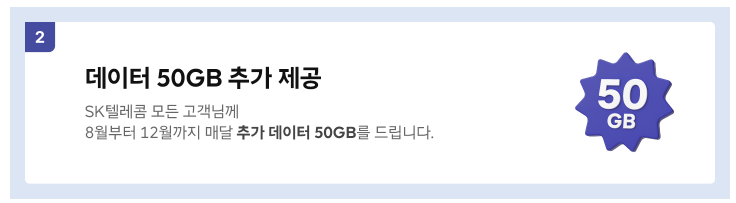 여기에 8월부터 연말까지 5개월간 매월 데이터 50GB를 추가 제공하여, 데이터 사용량이 많은 분들에게 큰 도움이 될 것으로 기대됩니다. 요금 부담을 줄이면서 넉넉하게 데이터를 사용할 수 있는 절호의 기회이니 꼭 챙기세요!