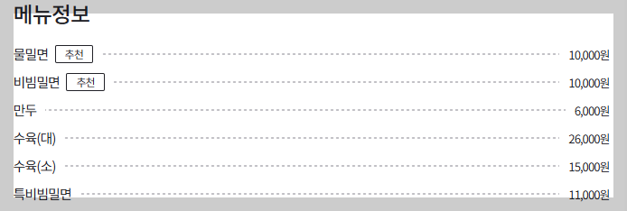 | 대표메뉴 | 밀면(물/비빔), 왕만두 |