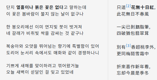 1) 다만 말하노니 꽃이 열흘 동안 붉지는 않습니다.