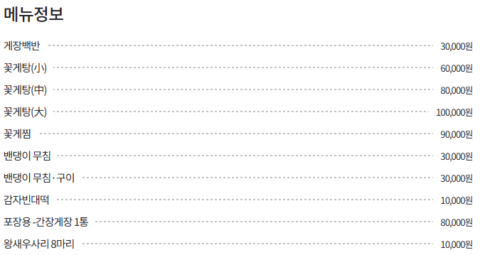 - 대표 메뉴: 꽃게탕, 간장게장, 양념게장 등