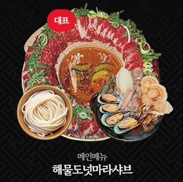 - 도넛마라샤브: 비주얼만으로도 시선을 사로잡는 메뉴입니다. 얼얼한 마라 육수에 쫄깃한 한우 대창과 곱창, 푸짐한 채소를 끓여 먹는 전골 요리입니다. 전골을 감싸고 있는 도넛 모양의 튀김이 독특함을 더해줍니다.
