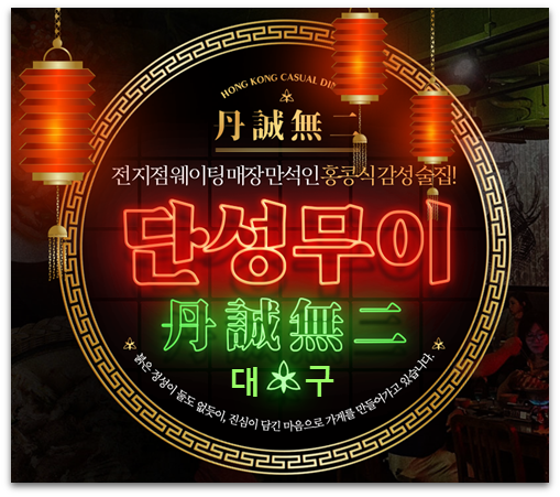 바쁜 일상에 지쳐 퇴근 후 어디를 갈지 고민되시나요? 평범한 저녁 대신 색다른 분위기 속에서 스트레스를 날리고 싶다면, 홍콩 감성 술집 단성무이가 정답입니다. 특히 대구에는 4개의 단성무이 지점이 있어 접근성도 뛰어납니다. 이곳은 단순히 술을 마시는 공간을 넘어, 홍콩의 네온사인 아래에서 즐겼던 그 활기찬 분위기, 혹은 중국 출장길에서 우연히 발견했던 이국적인 골목의 맛집 추억을 떠올리게 합니다.
