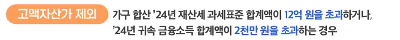 - 가구원 합산 2024년 재산세 과세표준 합계액이 12억 원을 초과하는 경우입니다.