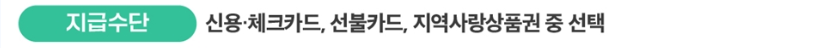 - 지역사랑상품권 앱: 코나아이, 한국조폐공사, 비즈플레이, KIS정보통신, 나이스정보통신, 부산은행, 제로페이, IM뱅크, 전북은행 등에서 운영하는 지역사랑상품권 앱에서도 신청할 수 있습니다.
