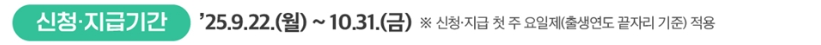 원활한 신청을 위해 신청 첫 주인 9월 22일(월)부터 9월 26일(금)까지는 출생년도 끝자리 기준으로 요일제가 적용됩니다.