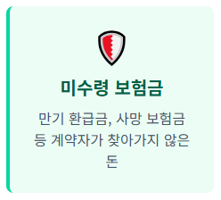 - 미수령 보험금: 만기 환급금, 사망 보험금 등 계약자나 수익자가 아직 찾아가지 않은 돈.