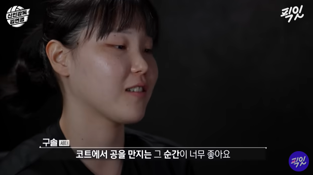 "**코트 위**에 들어가서 **공을 만지는 그 순간**이 너무 좋은 거 같아요."