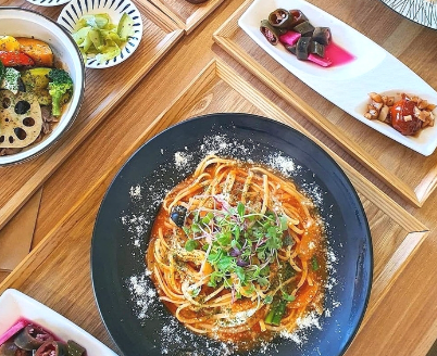 파스타 메뉴 주문 시 **다양한 신선 채소로 구성된 샐러드바를 무료**로 이용할 수 있어 **농가의 식탁**의 가성비가 높습니다.