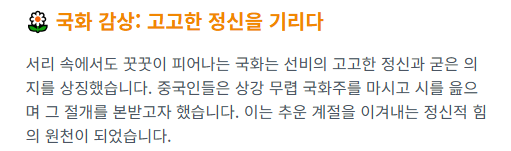 '상강'이라는 절기 하나에 이렇게 다양한 문화적 상징과 삶의 지혜가 녹아 있습니다.