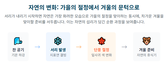 **상강뜻**은 단순한 기상 현상을 넘어 농업 생산 활동과 직결되는, 생존을 위한 중요한 기후 정보였던 셈입니다.