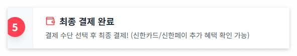 - 이제 결제 수단을 선택하고 최종 결제를 진행합니다. 신한카드나 신한페이(신한pLay)를 이용하시면 추가 혜택이 있을 수도 있으니 확인해보시는 것도 좋습니다!