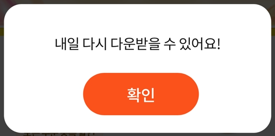 - 페이지 이동 후 **'쿠폰 받기' 또는 '다운로드'** 버튼을 찾아 눌러 쿠폰을 발급받습니다. (이 쿠폰은 계정당 1일 1회만 발급받을 수 있습니다. 이미 받으셨다면 '받은 쿠폰함'에서 확인 가능합니다.)