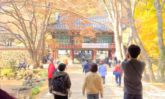 웅장한 사찰 건물과 어우러진 단풍은 경건하면서도 평화로운 아름다움을 선사합니다. 사찰 주변을 거닐며 가을 정취를 만끽하고 잠시 마음의 평화를 찾아보세요.