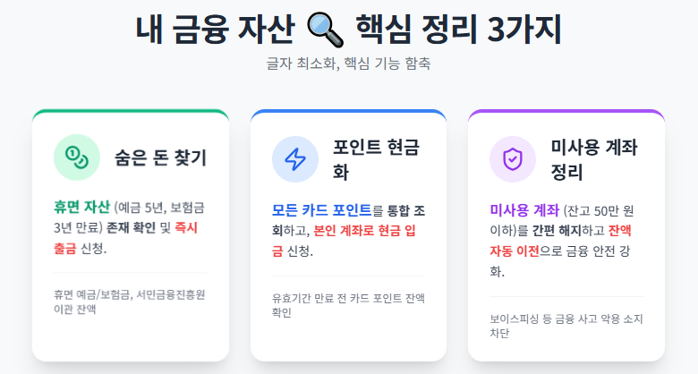 2. ⭐ 필수 기능 3가지: 숨은 돈 찾기부터 계좌 정리까지