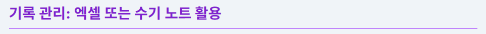 - 간단한 엑셀(컴퓨터) 또는 수기 노트 활용: