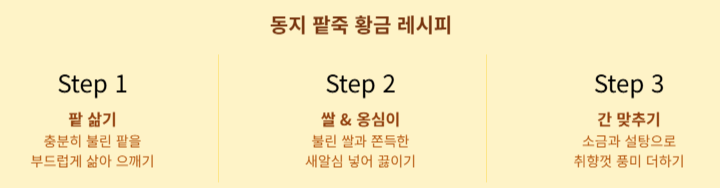 - 중동지 (음력 11월 11일~20일): 2026년 동지가 바로 여기에 해당합니다. 중동지에는 팥죽이나 팥떡 중 원하는 것을 자유롭게 즐깁니다.