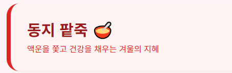 현대 사회에서는 이러한 금기를 엄격히 지키기보다, 가족이 모여 따뜻한 음식을 나누며 한 해를 정리하고 서로의 건강을 기원하는 소통의 시간으로 삼는 것이 동지의 진정한 의미라고 할 수 있습니다.