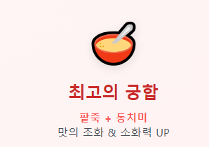 팥죽은 그 자체로도 훌륭하지만, '동치미'와 함께 먹을 때 가장 소화가 잘 되고 맛의 조화가 뛰어납니다. 동치미의 시원한 국물은 팥의 사포닌 성분이 일으킬 수 있는 속 쓰림을 완화해 줍니다.