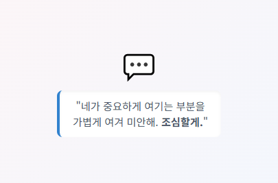 "내가 네가 중요하게 생각하는 부분을 가볍게 여긴 것 같아 미안해. 다시는 그 부분에 대해 조심할게."